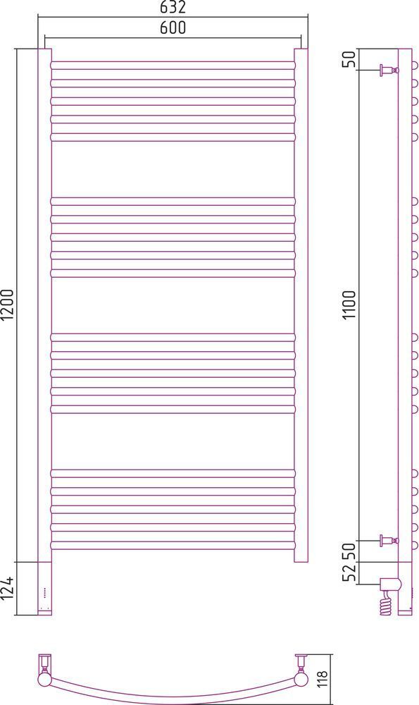 Полотенцесушитель электрический Сунержа Богема 3.0 П20 1200x600 мм (выгнутая перемычка) 12-5802-1260 L, белый