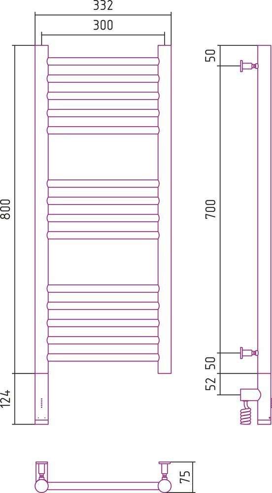 Электрический полотенцесушитель Сунержа Богема 3.0 800х300 мм, 14 перекладин(5-4-5). Мощность 300 Вт, цвет белый матовый. Интегрированное в корпус скрытое подключение.