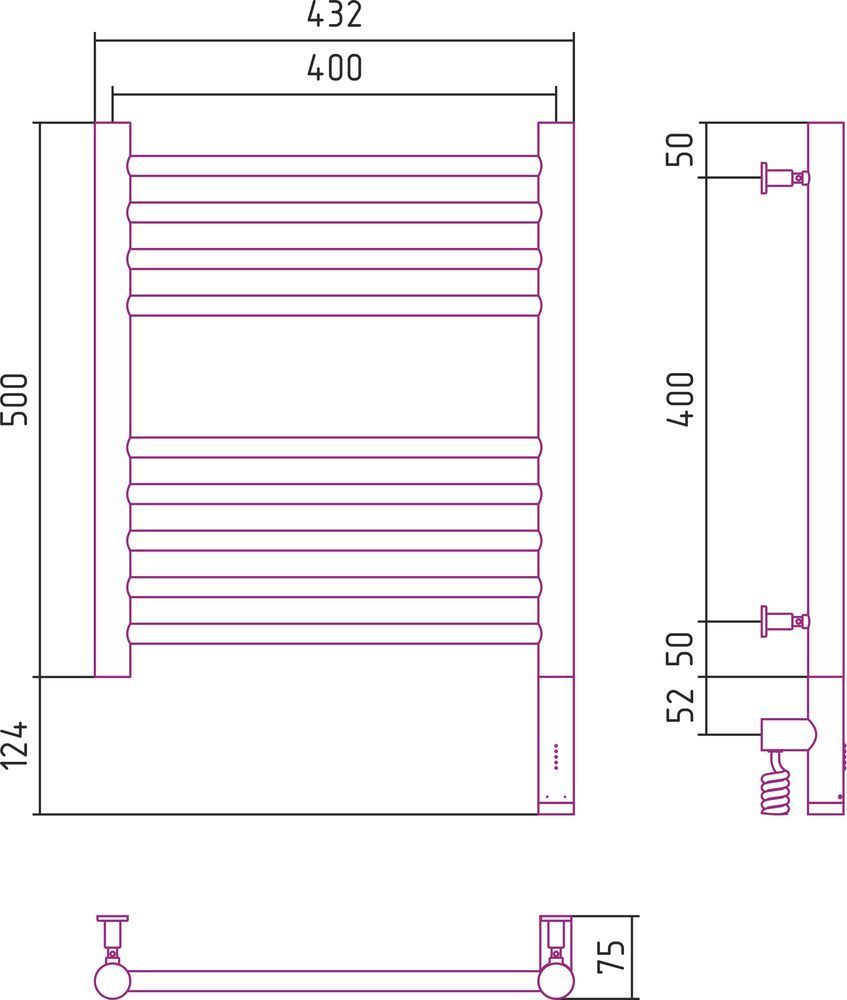 Электрический полотенцесушитель Сунержа Богема 3.0 500х400 мм, 9 перекладин(4-5). Мощность 300 Вт, цвет белый. Интегрированное в корпус скрытое подключение.