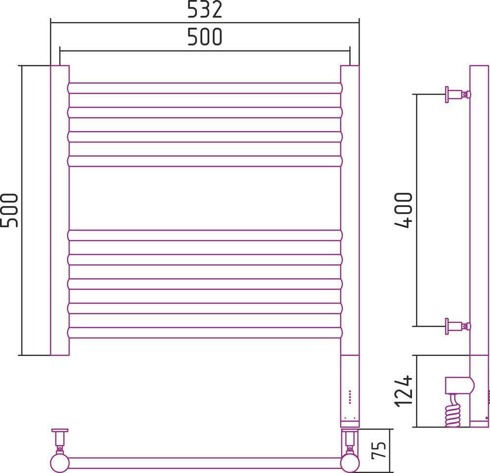 Электрический полотенцесушитель Сунержа Богема 3.0 500х500 мм, 9 перекладин(4-5). Мощность 300 Вт. Скрытое подключение.