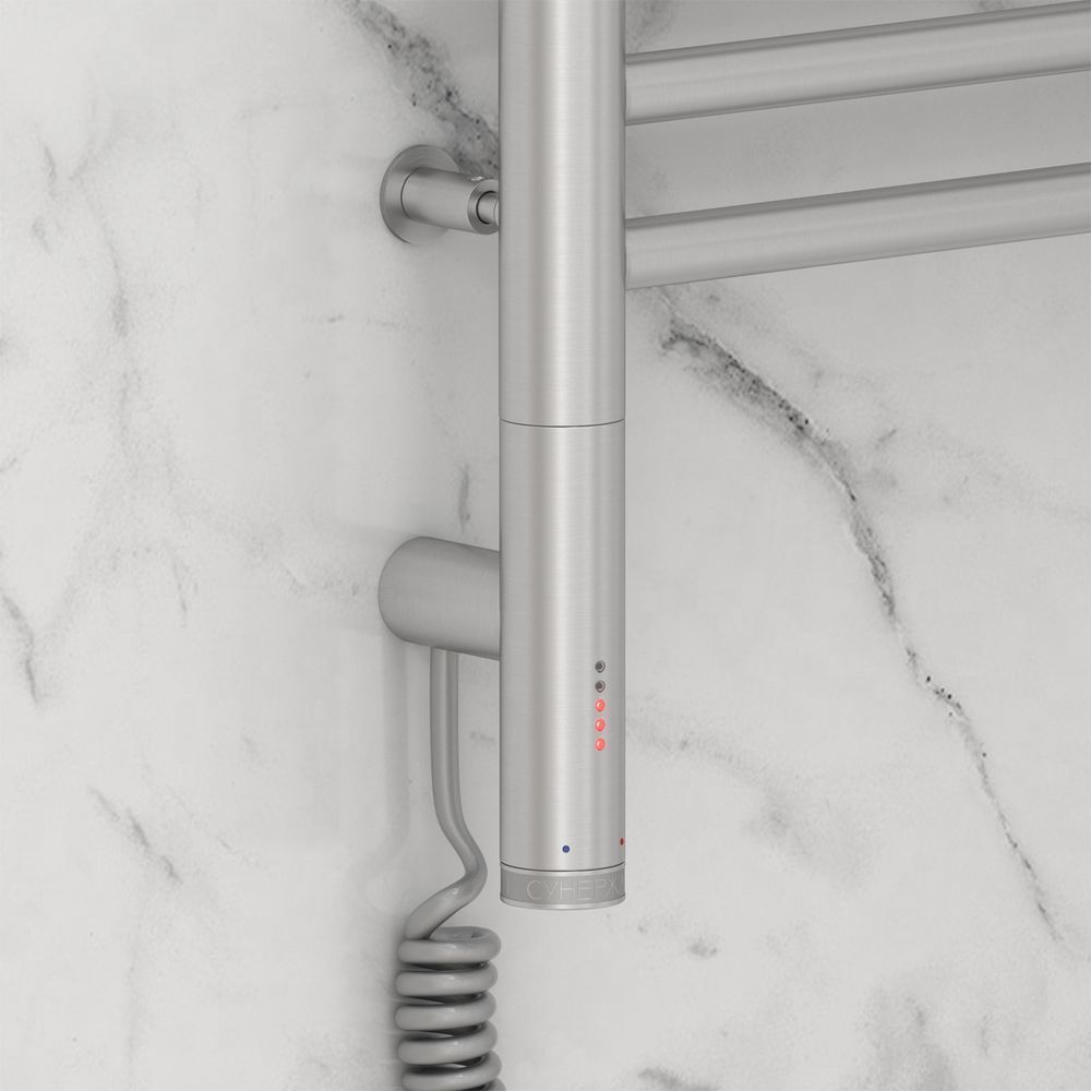 Электрический полотенцесушитель Сунержа Богема 3.0 500х500 мм, 9 перекладин(4-5). Мощность 300 Вт, цвет сатин. Интегрированное в корпус скрытое подключение.