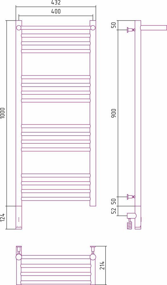 Электрический полотенцесушитель Сунержа Богема с полкой 3.0 1000х400 мм, 16 перекладин(4-4-4-4). Мощность 300 Вт, цвет белый матовый. Интегрированное в корпус скрытое подключение.