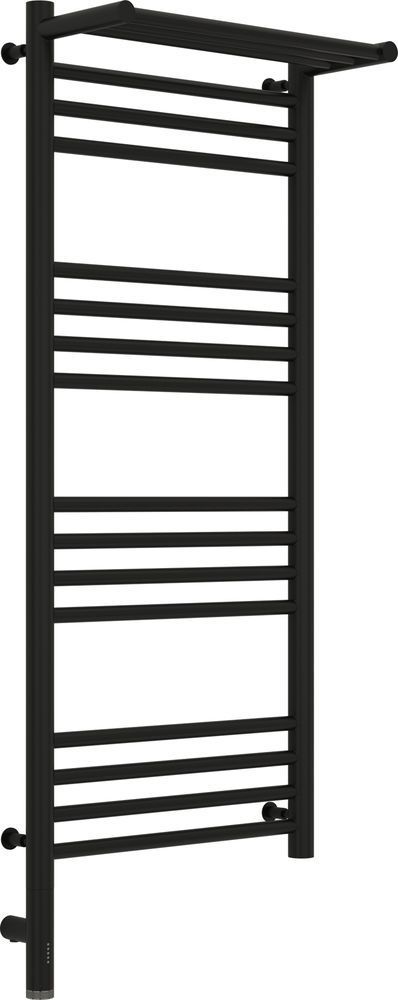 Электрический полотенцесушитель Сунержа Богема с полкой 3.0 1000х400 мм, 16 перекладин(4-4-4-4). Мощность 300 Вт, цвет чёрный матовый. Интегрированное в корпус скрытое подключение.
