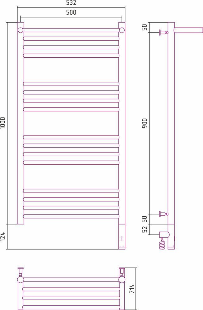 Полотенцесушитель электрический Сунержа Богема с полкой 3.0 П16 1000x500 мм (прямая перемычка) 00-5807-1050 R
