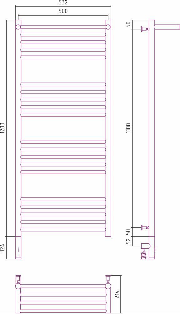 Электрический полотенцесушитель Сунержа Богема с полкой 3.0 1200х500 мм, 20 перекладин(5-5-5-5). Мощность 300 Вт, цвет хром. Интегрированное в корпус скрытое подключение.