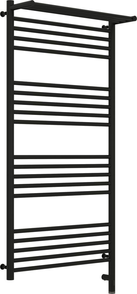 Электрический полотенцесушитель Сунержа Богема с полкой 3.0 1200х600 мм, 20 перекладин(5-5-5-5). Мощность 300 Вт, цвет чёрный матовый. Интегрированное в корпус скрытое подключение.