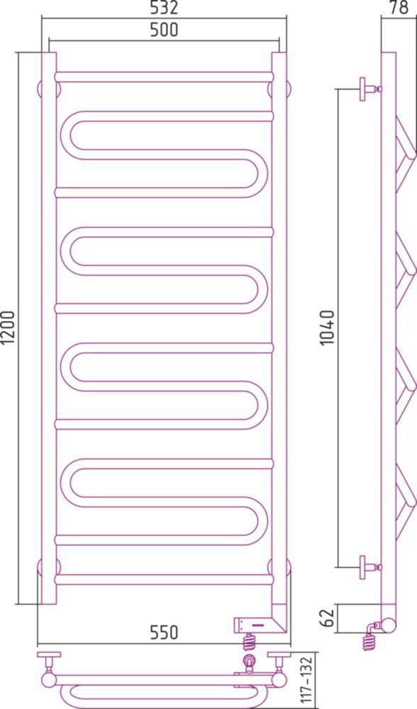 Полотенцесушитель электрический Сунержа Элегия 2.0 П14 1200x500 мм 00-5219-1250 R