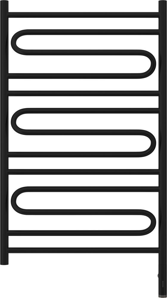 Полотенцесушитель электрический Сунержа Элегия 3.0, размер 1000х600 мм, 13 перекладин. Мощность 300 Вт, цвет чёрный матовый. Интегрированное в корпус скрытое подключение.