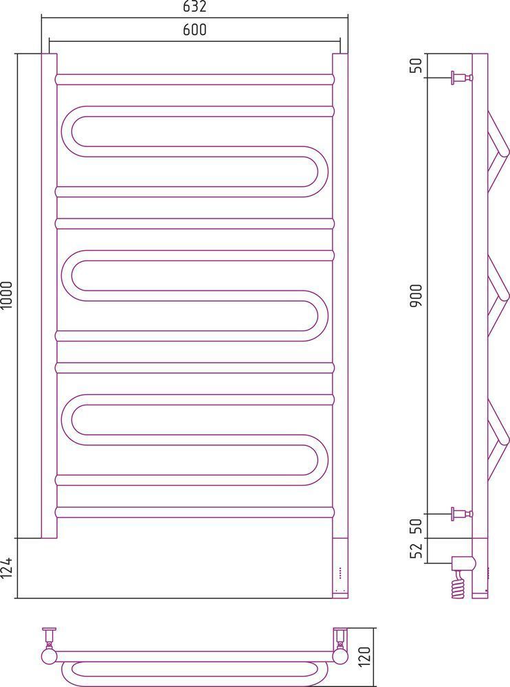 Полотенцесушитель электрический Сунержа Элегия 3.0 П13 1000x600 мм 31-5819-1060 R, чёрный матовый