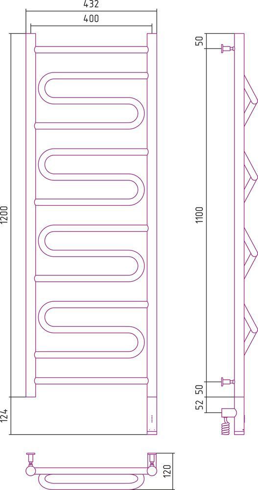 Полотенцесушитель электрический Сунержа Элегия 3.0, размер 1200х400 мм, 14 перекладин. Мощность 300 Вт. Скрытое подключение.