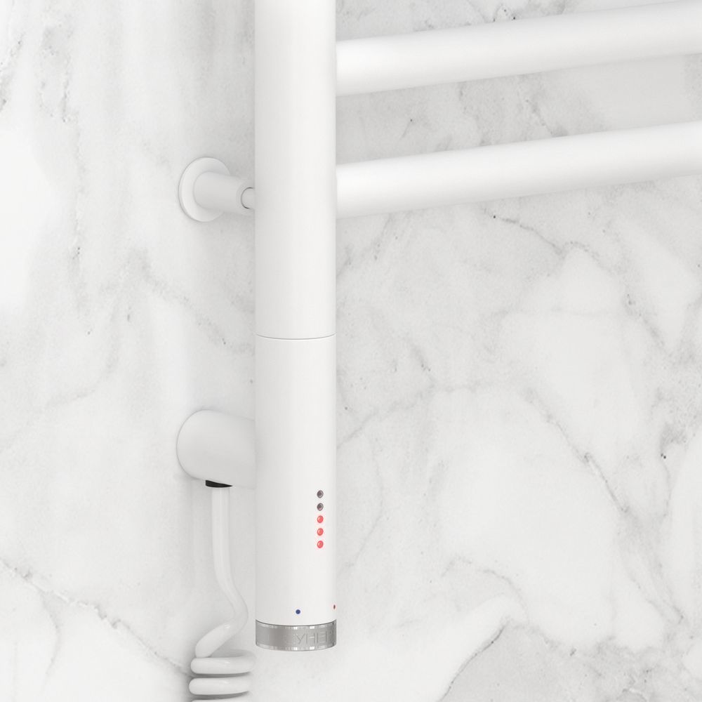 Полотенцесушитель электрический Сунержа Элегия 3.0, размер 1200х500 мм, 14 перекладин. Мощность 300 Вт, цвет белый матовый. Интегрированное в корпус скрытое подключение.