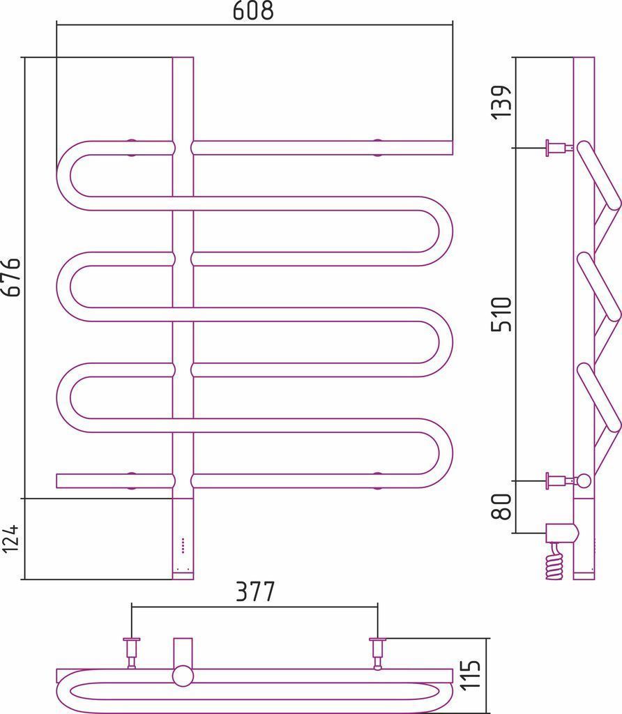 Полотенцесушитель электрический Сунержа Эпатаж 3.0, размер 800х608 мм, 7 перекладин. Мощность 300 Вт. Цвет белый. Интегрированное в корпус скрытое подключение.