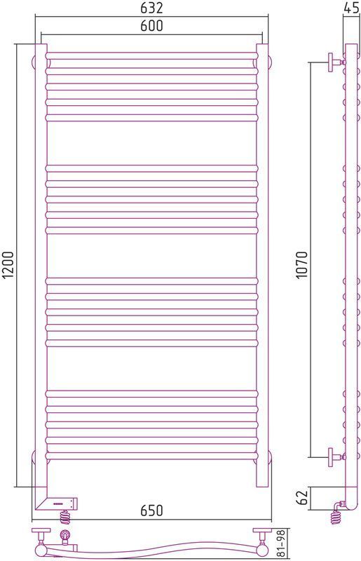 Полотенцесушитель электрический Сунержа Флюид 2.0 П20 1200х600 мм 00-5220-1260 L