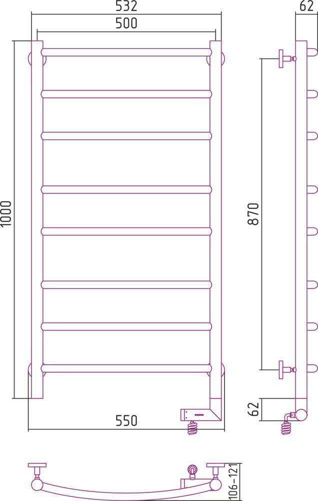 Полотенцесушитель электрический Сунержа Галант 2.0 П8 1000x500 мм 31-5201-1050 R, чёрный матовый