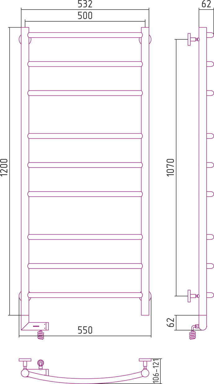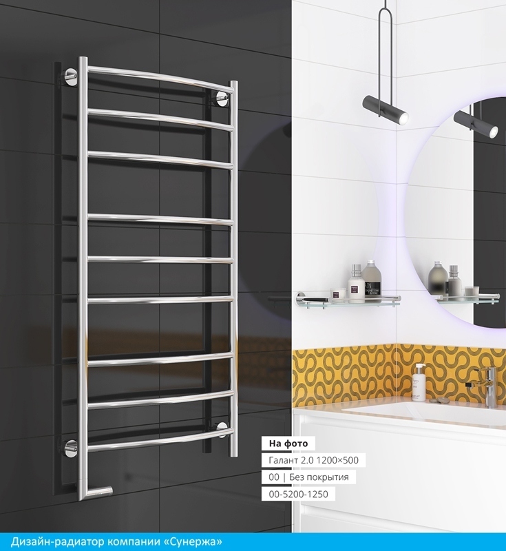 Электрический полотенцесушитель Сунержа Галант 2.0 1200x500 мм, 9 перекладин. Мощность 300 Вт. Возможна установка модуля скрытого подключения.