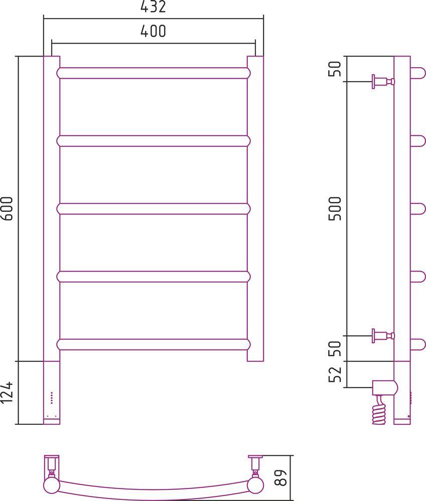 Полотенцесушитель электрический Сунержа Галант 3.0 П5 600x400 мм 00-5800-6040 L