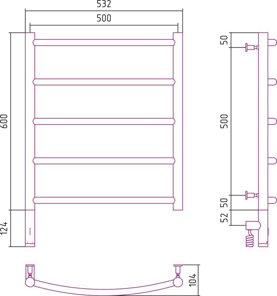 Полотенцесушитель электрический Сунержа Галант 3.0 П5 600x500 мм 020-5800-6050 L, шампань