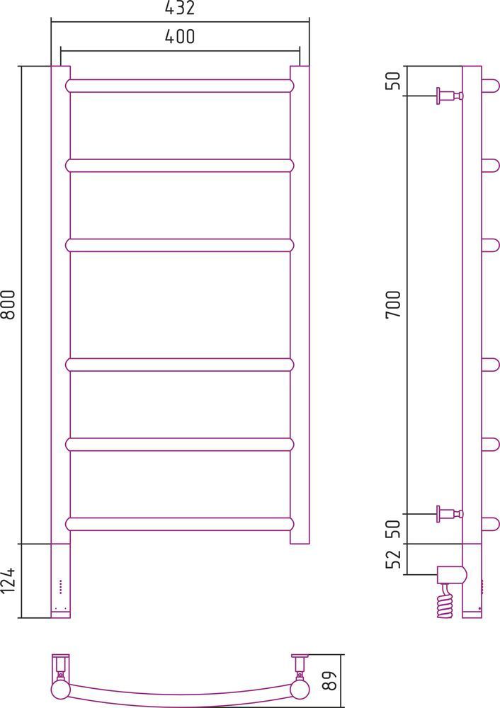 Полотенцесушитель электрический Сунержа Галант 3.0 П6 800x400 мм 00-5800-8040 L