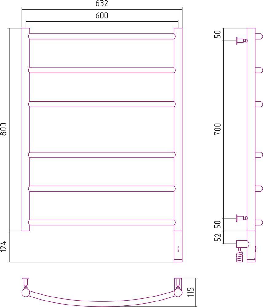 Полотенцесушитель электрический Сунержа Галант 3.0 П6 800x600 мм 05-5801-8060 R, состаренная бронза