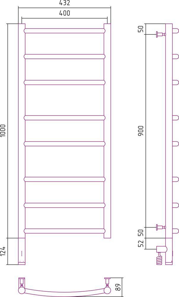 Полотенцесушитель электрический Сунержа Галант 3.0 П8 1000x400 мм 31-5800-1040 L, чёрный матовый