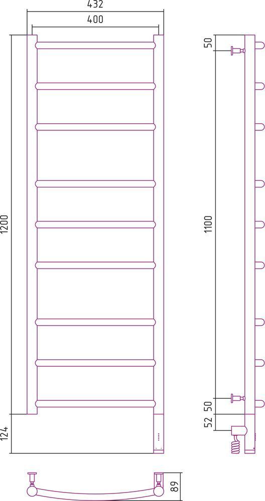 Полотенцесушитель электрический Сунержа Галант 3.0 П9 1200x400 мм 071-5801-1240 R, сатин