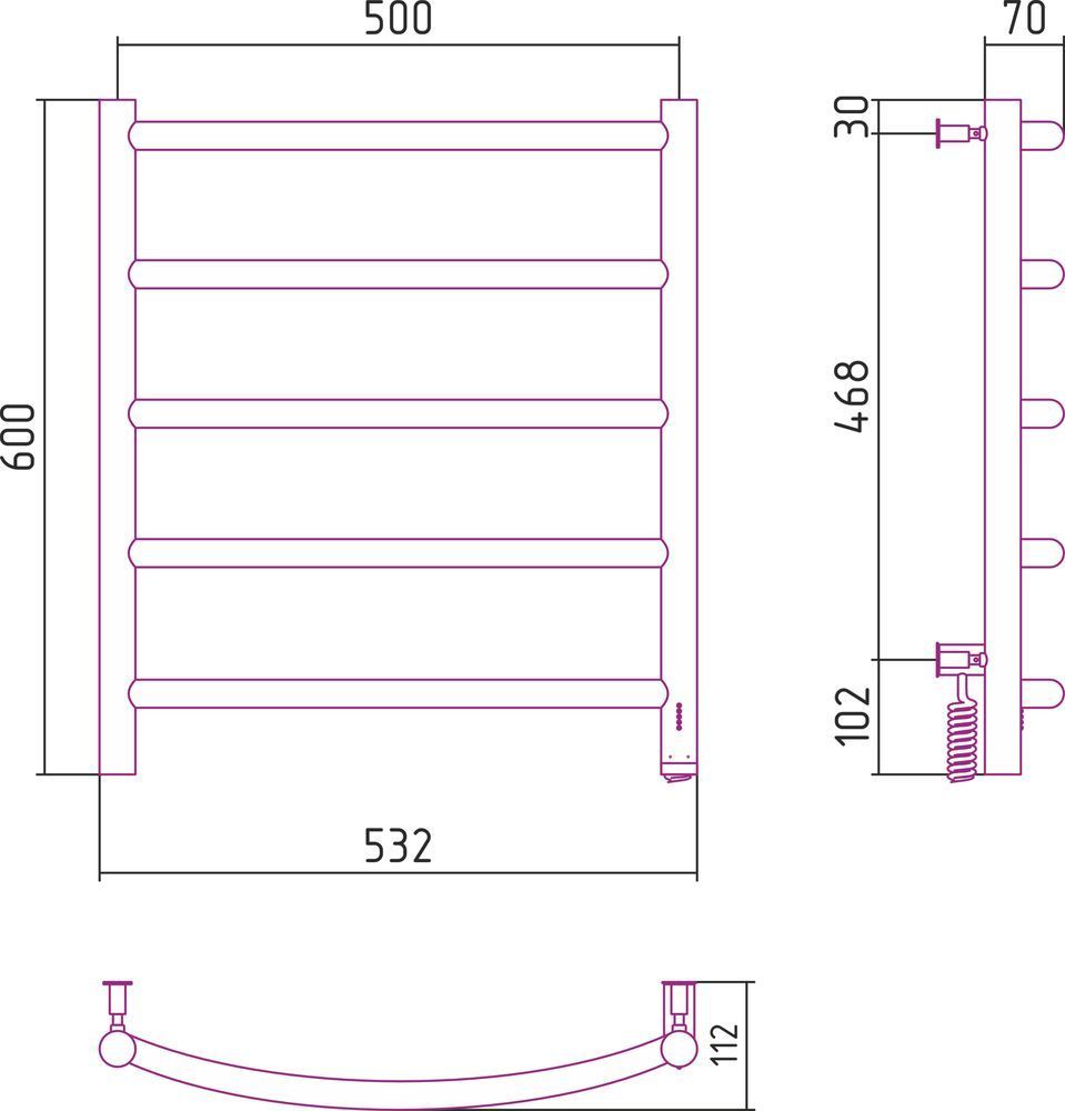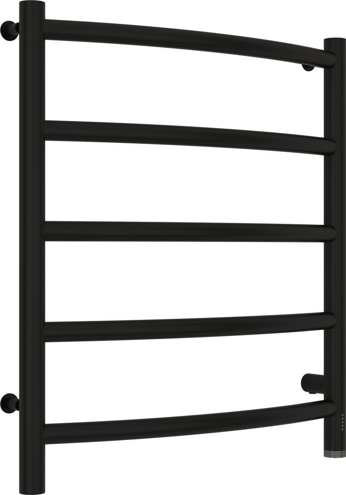 Полотенцесушитель электрический Сунержа Галант 4.0, размер 600х532 мм, 5 перекладин. Мощность 90 Вт, цвет чёрный матовый. Интегрированное в корпус скрытое подключение.
