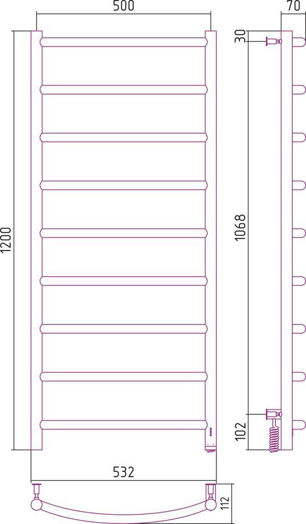 Размер полотенцесушителя - мм