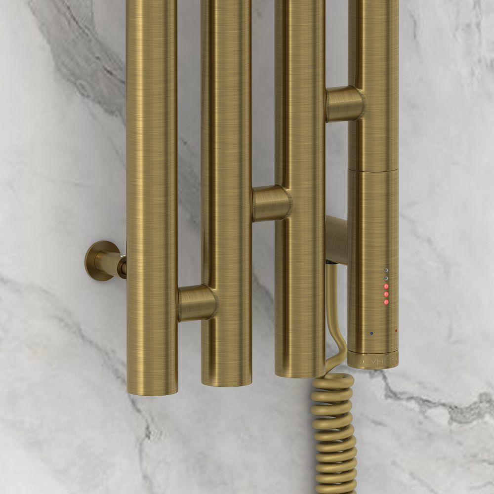 Полотенцесушитель электрический Сунержа Кантата 3.0, размер 1500х191 мм, 4 перекладины, мощность 300 Вт. Скрытое подключение. Цвет состаренная латунь.