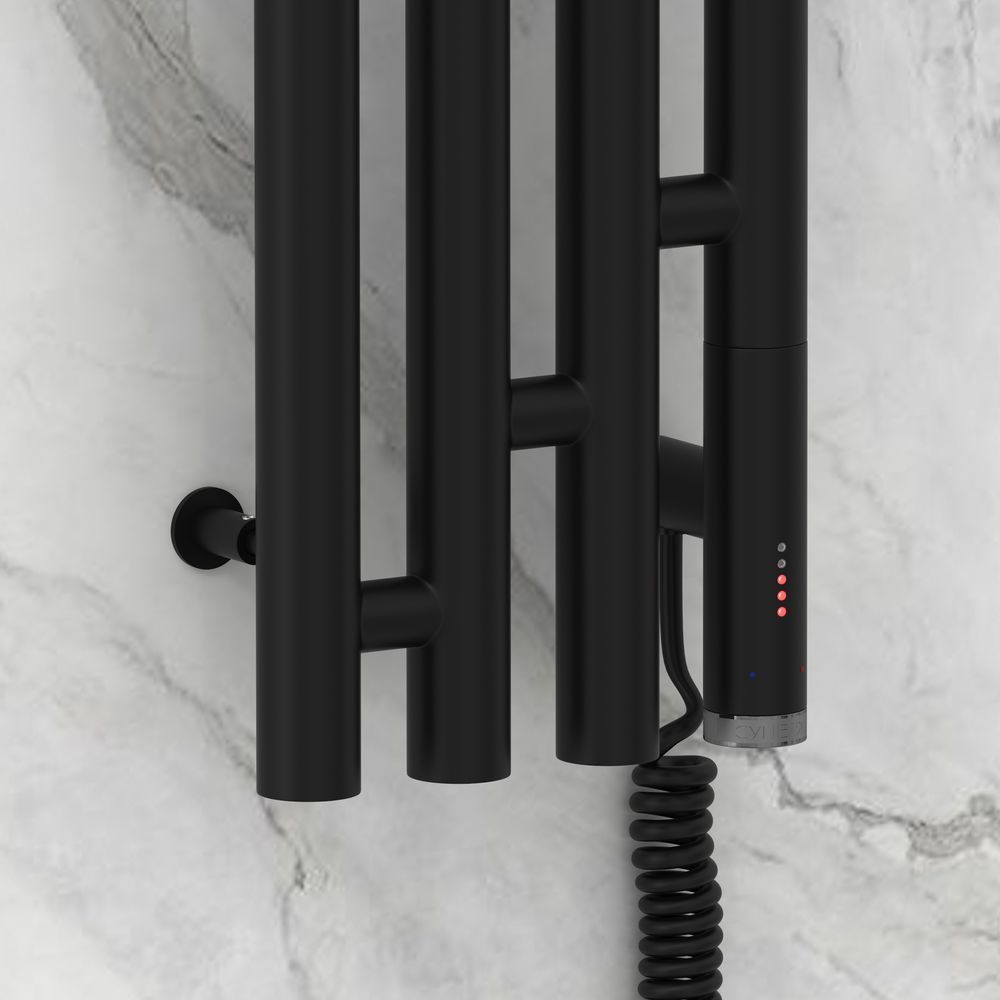 Полотенцесушитель электрический Сунержа Кантата 3.0, размер 1500х191 мм, 4 перекладины, мощность 300 Вт. Скрытое подключение. Цвет чёрный матовый.