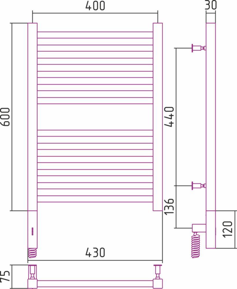 Полотенцесушитель электрический Сунержа Модус 3.0 П12 600x400 мм 00-5700-6040 L