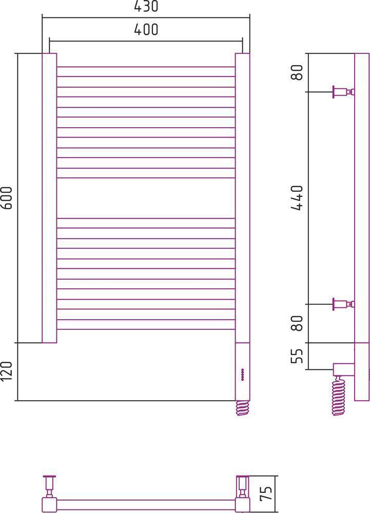 Полотенцесушитель электрический Сунержа Модус 3.0, размер 600х430 мм, 12 перекладин(6-6). Мощность 300 Вт, цвет чёрный матовый. Интегрированное в корпус скрытое подключение.