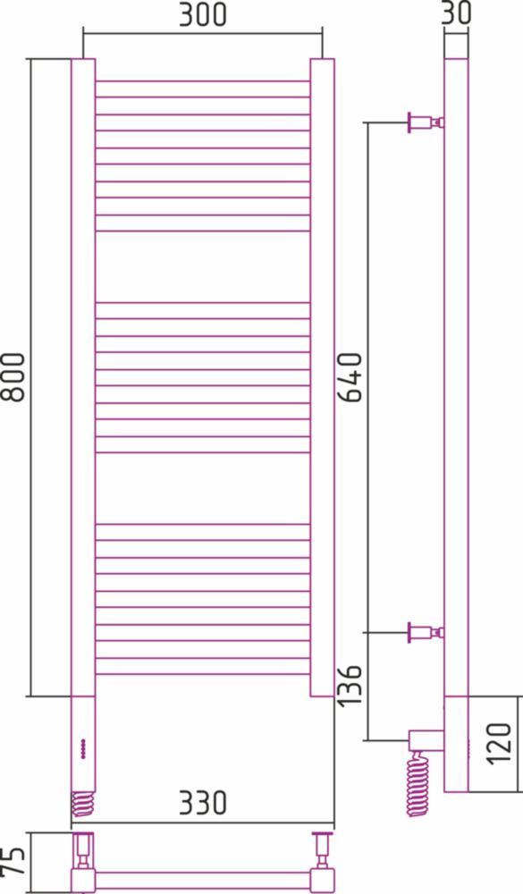 Полотенцесушитель электрический Сунержа Модус 3.0, размер 800х330 мм, 15 перекладин(5-5-5). Мощность 300 Вт. Возможна установка модуля скрытого подключения.