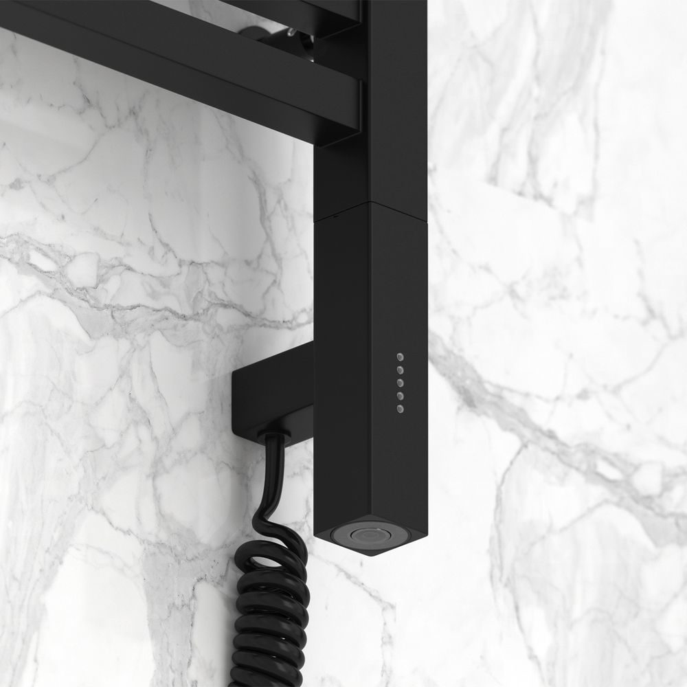 Полотенцесушитель электрический Сунержа Модус 3.0, размер 1120х430 мм, 16 перекладин(4-4-4-4). Мощность 300 Вт, цвет чёрный матовый. Интегрированное в корпус скрытое подключение.