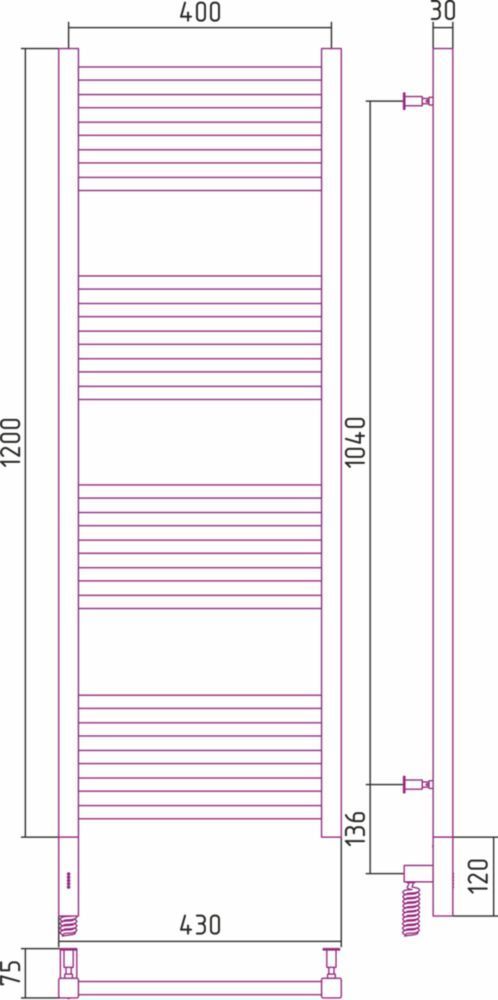 Полотенцесушитель электрический Сунержа Модус 3.0 П20 1200x400 мм 00-5700-1240 L