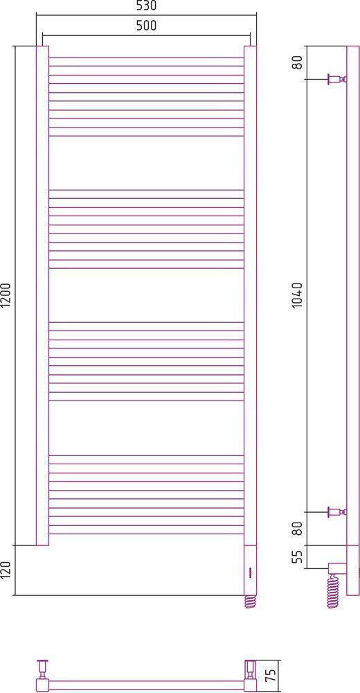 Полотенцесушитель электрический Сунержа Модус 3.0, размер 1320х530 мм, 20 перекладин(5-5-5-5). Мощность 300 Вт, цвет белый. Интегрированное в корпус скрытое подключение.