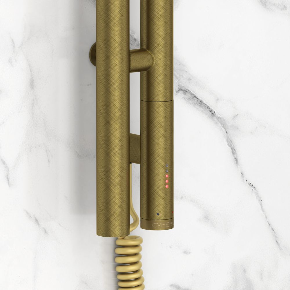 Полотенцесушитель электрический Сунержа Нюанс 3.0, размер 1200х85 мм, 2 перекладины. Мощность 300 Вт. Цвет состаренная бронза. Интегрированное в корпус скрытое подключение.