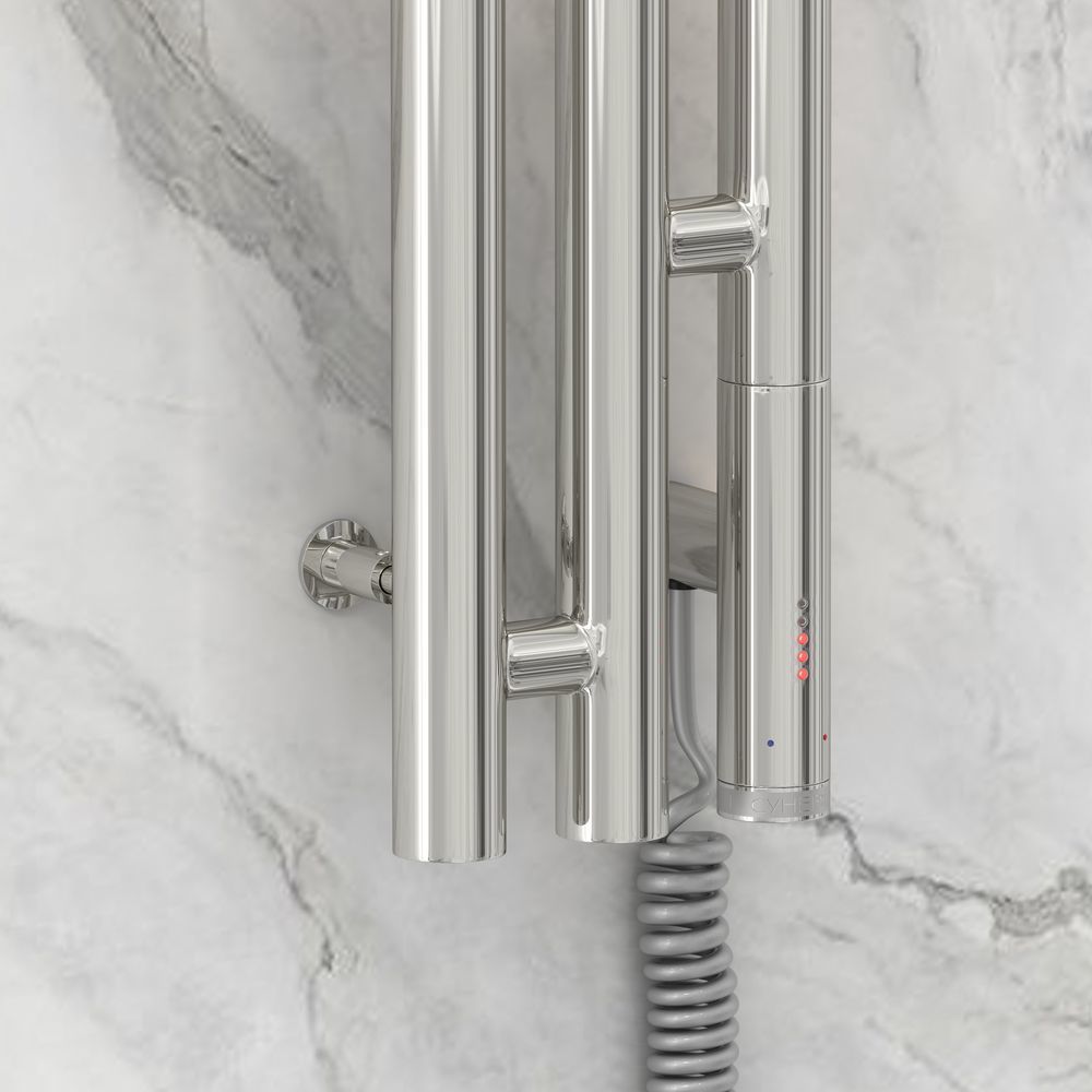 Полотенцесушитель электрический Сунержа Терция 3.0, размер 1500х138 мм, 3 перекладины, мощность 300 Вт. Скрытое подключение. Цвет хром.