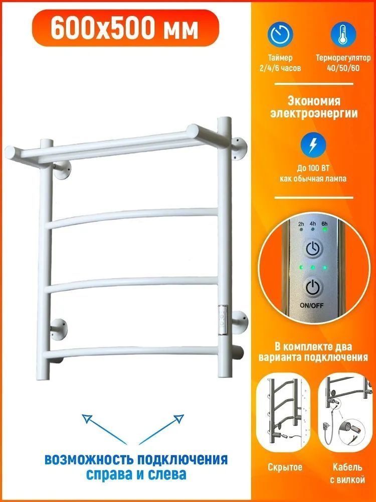 Полотенцесушитель электрический Тругор Пэк сп 5 ВГП с полкой П4 500х600 мм, белый (возможность скрытого подключения) 00-00042749