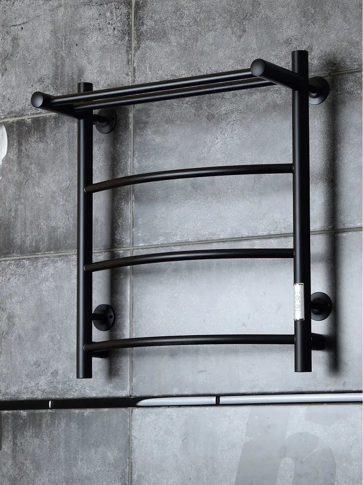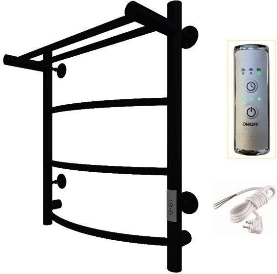 Полотенцесушитель электрический Тругор Пэк сп 5 ВГП с полкой, 4 перекладины, мощность 60 Вт, цвет чёрный. Возможность скрытого подключения.