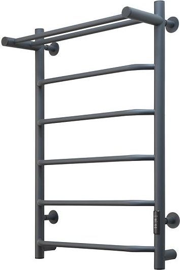 Полотенцесушитель электрический Тругор Пэк сп 6 с полкой, 6 перекладин, мощность 60-100 Вт, цвет графит. Возможность скрытого подключения.