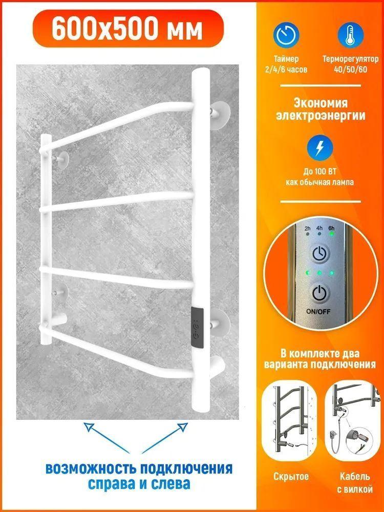 Полотенцесушитель электрический Тругор Пэк сп 6 ВГП П4 500х600 мм, белый (возможность скрытого подключения) 00-00036149