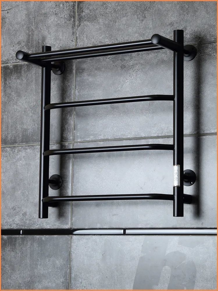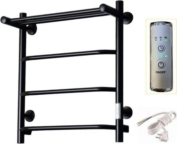 Полотенцесушитель электрический Тругор Пэк сп 6 ВГП с полкой, 4 перекладины, мощность 60 Вт, цвет чёрный. Возможность скрытого подключения.