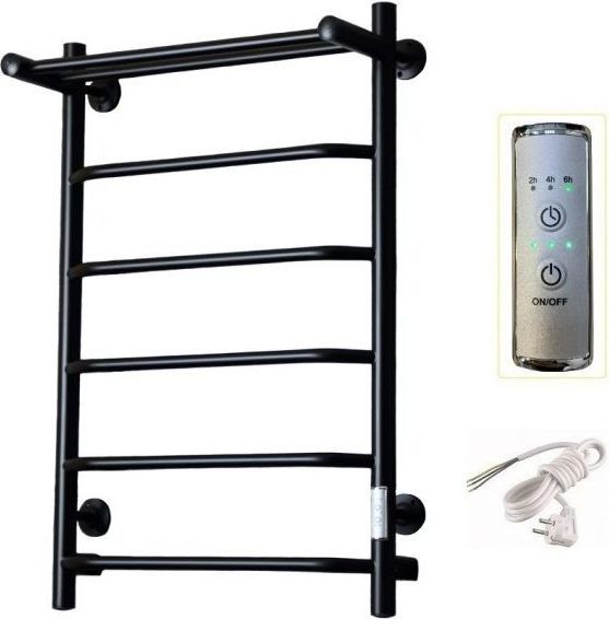 Полотенцесушитель электрический Тругор Пэк сп 6 ВГП с полкой, 6 перекладин, мощность 60 Вт, цвет чёрный. Возможность скрытого подключения.