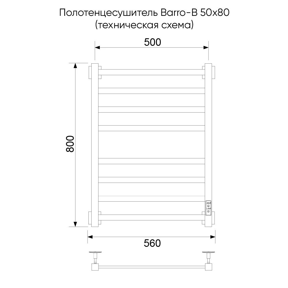 Полотенцесушитель электрический Veconi Barro-B B8050CH-B, размер 500х800 мм, 8 перекладин, мощность 138 Вт. Скрытое подключение. Цвет хром.