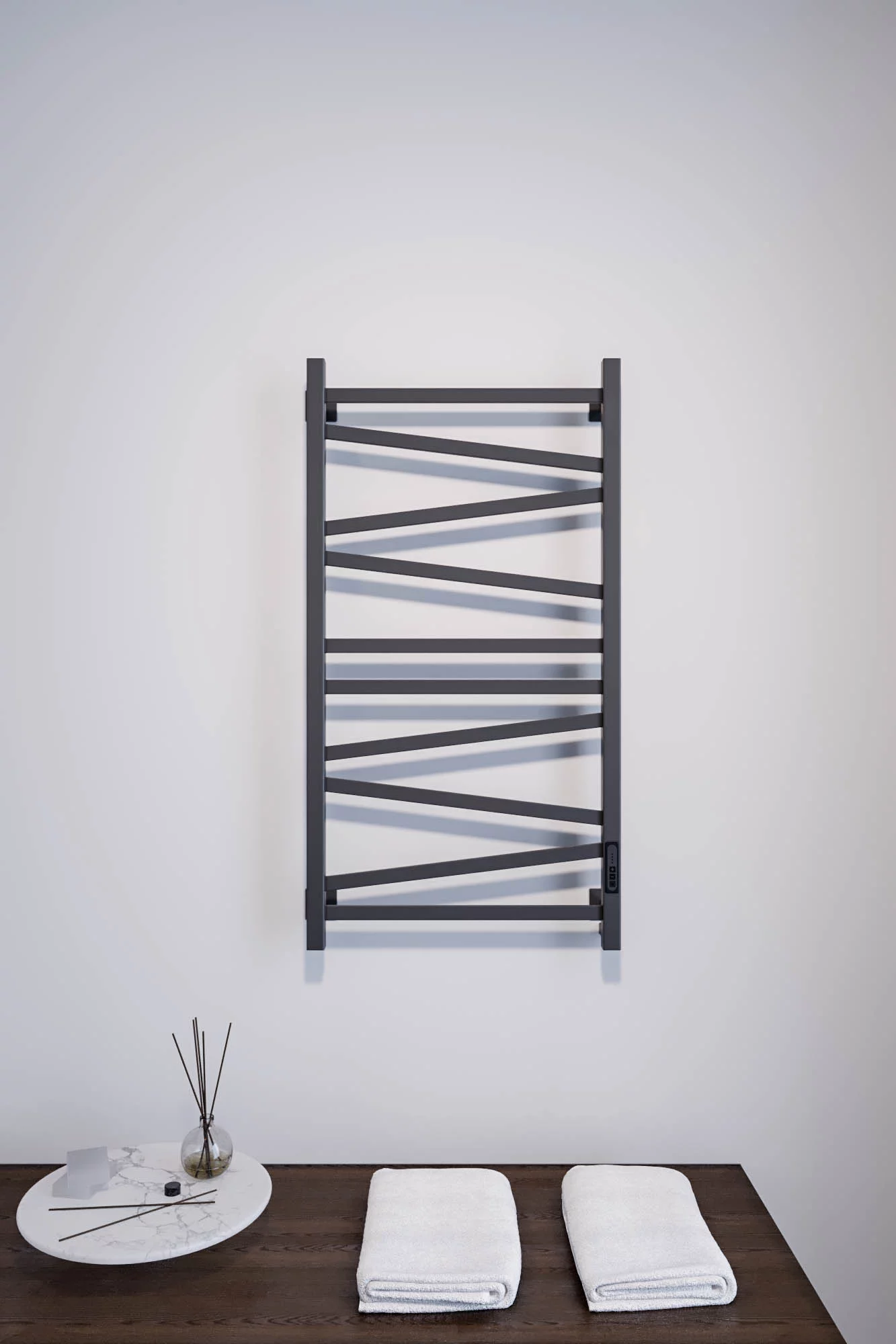 Полотенцесушитель электрический Veconi Barro-C B10050B-C, размер 500х1000 мм, 10 перекладин, мощность 165 Вт. Скрытое подключение. Цвет чёрный.