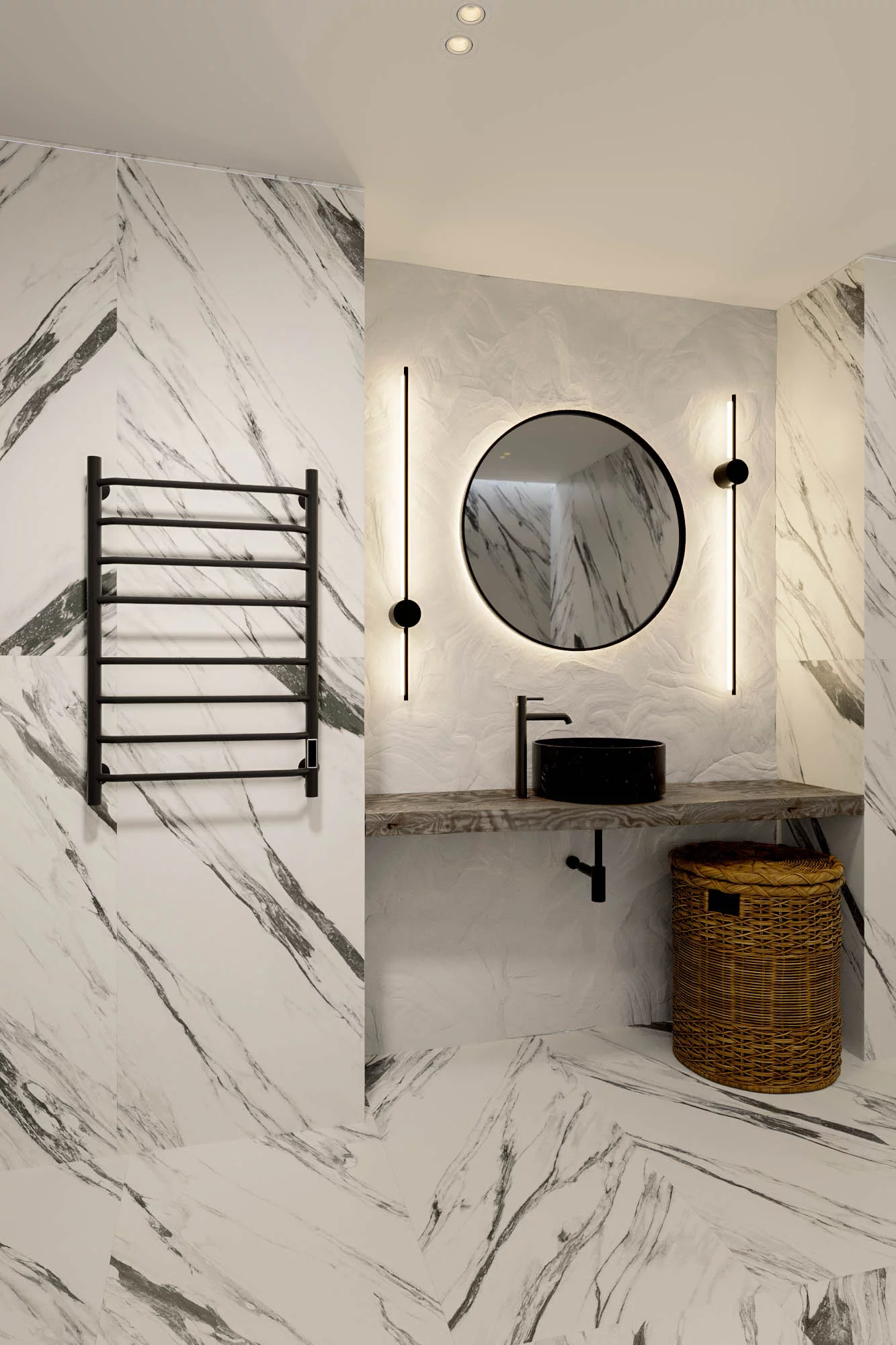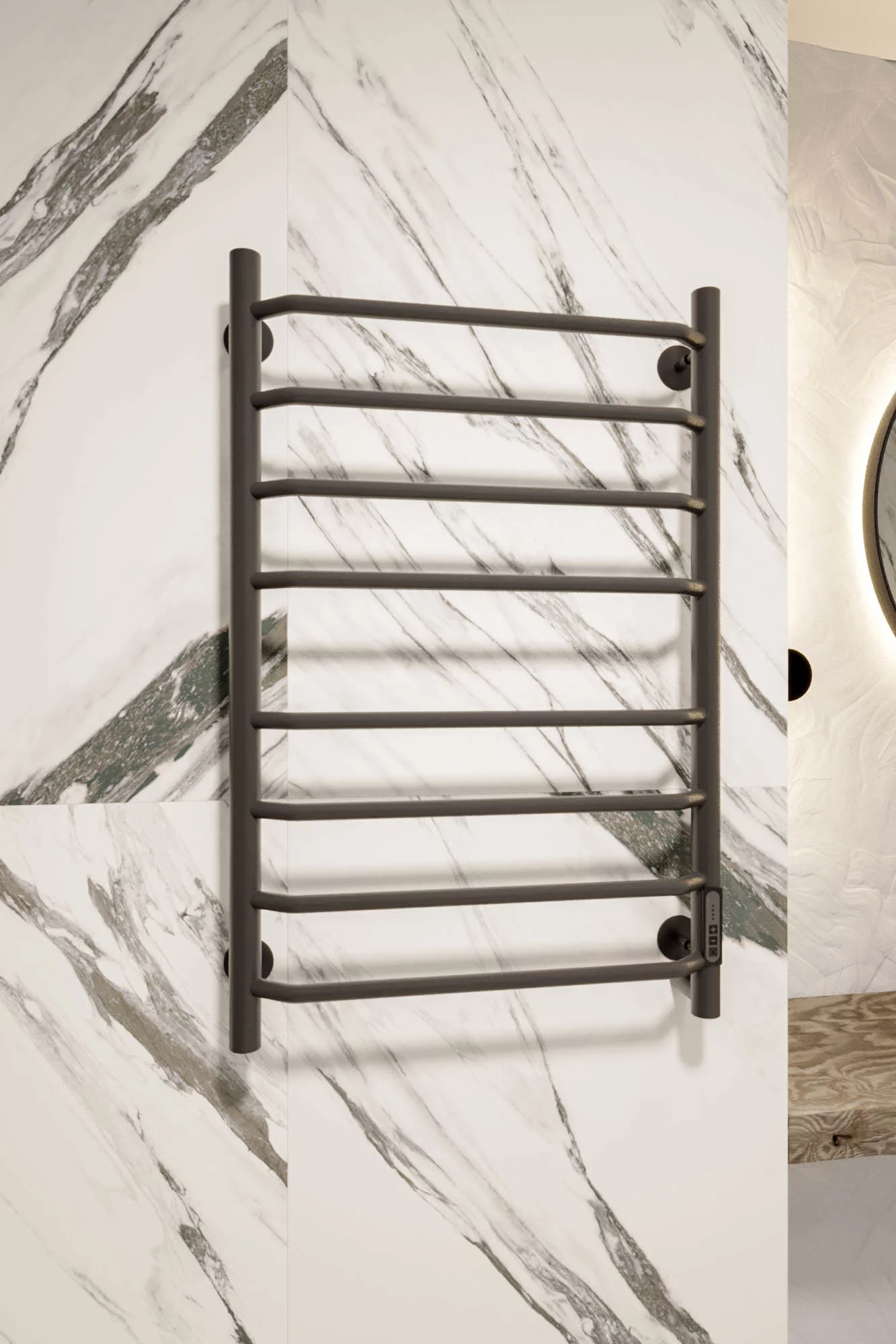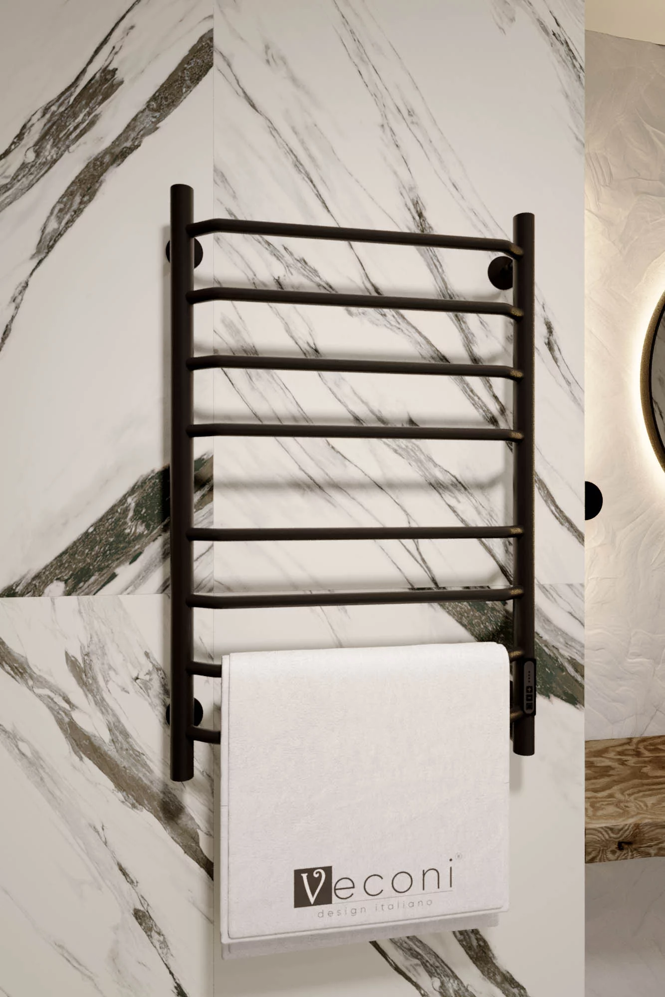 Полотенцесушитель электрический Veconi Cantu-A C8050B-A, размер 500х800 мм, 8 перекладин, мощность 97 Вт. Скрытое подключение. Цвет чёрный.