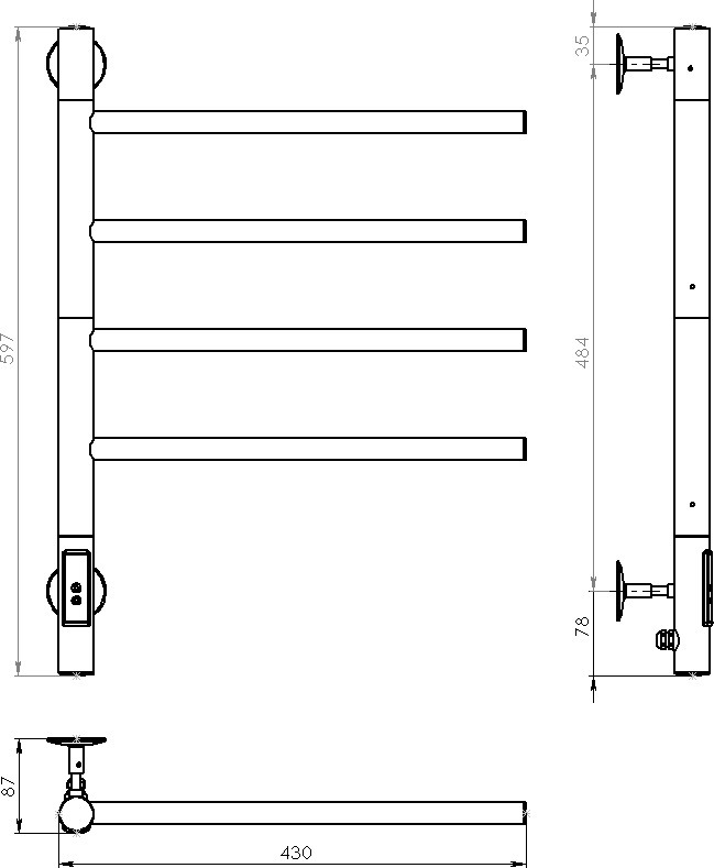 Полотенцесушитель электрический Vincea 597x430 мм VTD-1S1CE, хром