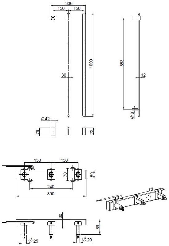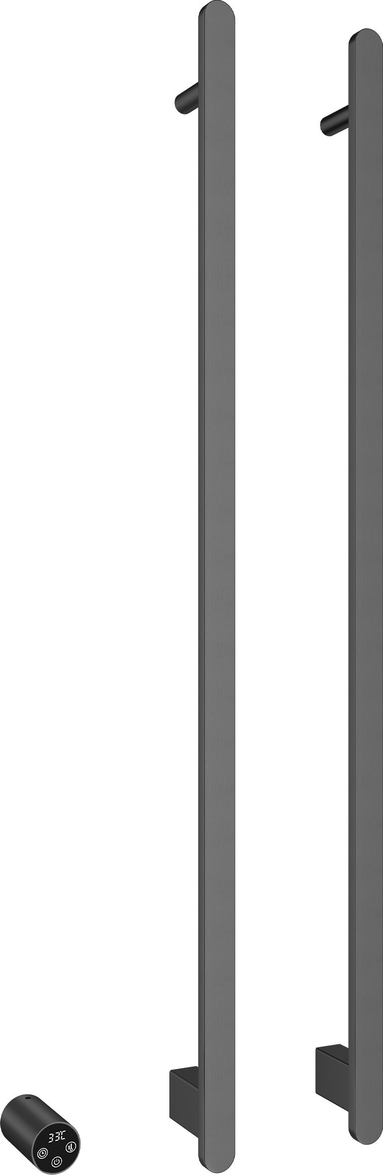 Полотенцесушитель электрический Vincea VTD-2VT1GM, размер 336x1000 мм, 2 перекладины, мощность 72 Вт, цвет вороненая сталь. Скрытое подключение.