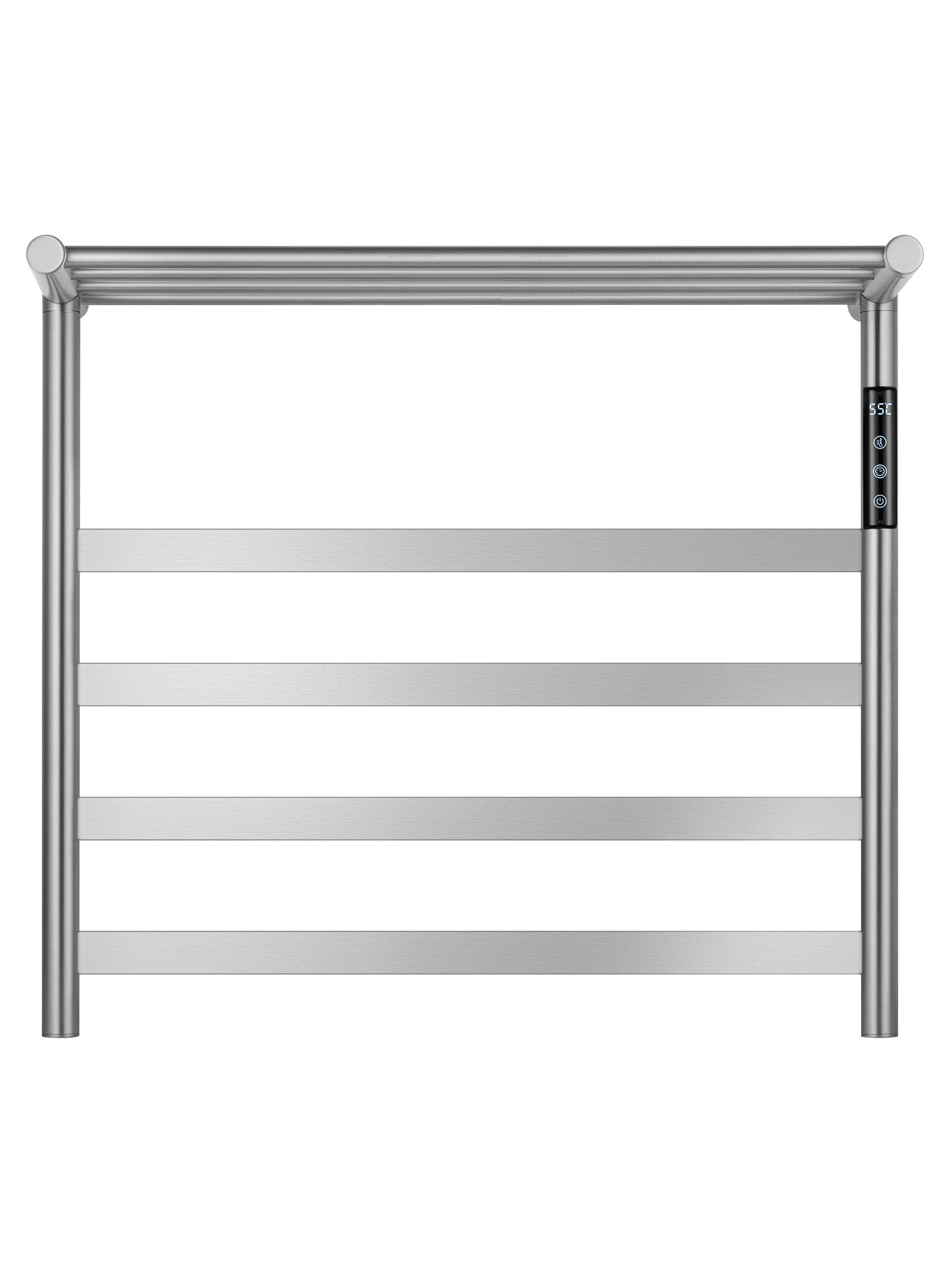 Полотенцесушитель электрический Wonzon & Woghand Essen с полкой WW-A402-BR, размер 575x510 мм, 5 перекладин, мощность 75 Вт, цвет никель.