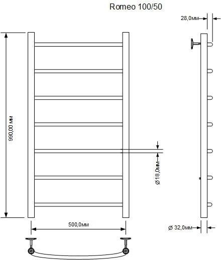 Полотенцесушитель водяной Aquanet Romeo, 7 перекладин, размер 500х990 мм, цвет хром.